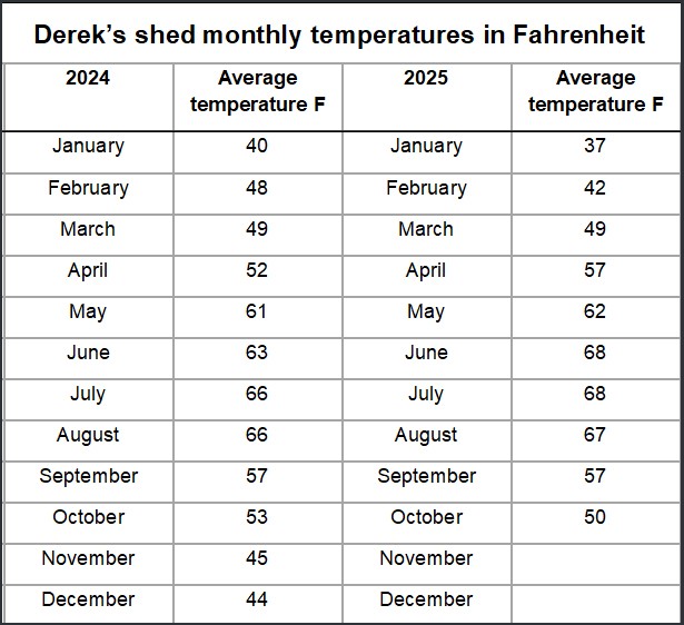 So what was the average temperature for this pleasant, and somewhat dry summer? My readings show that for the months of June, July and August 2025 the average was 68 Fahrenheit, which was warm and on some days quite hot, but far from exceptional and most definitely not the hottest summer ever, which brings me back to sorting out my few remaining follicles with my fingers and the question: hottest what?